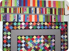 The lower part of this picture is the Aunt Cora’s test quilt. Someone on Stashbusters wanted people to try her pattern. There is one more striped border and then 4 pieced corners made for this. It stalled because of the math of making that inner border fit the outer corners, and mitering the stripes. I sewed the pictured ones by hand. Now I will just ask DH to figure it out for me (engineer type). The top of the page was some Chinese Coins I was making into a Heartstrings quilt (charity). If you don’t know about Heartstrings, you can find it here.
